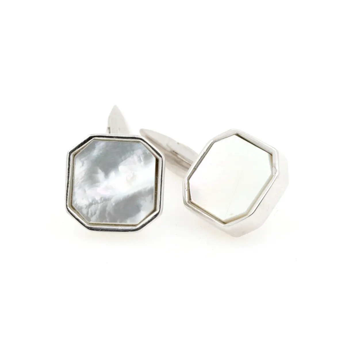 Gemelli Ottagonali in Argento 925 Rodiato con Madreperla Naturale – 13 mm
